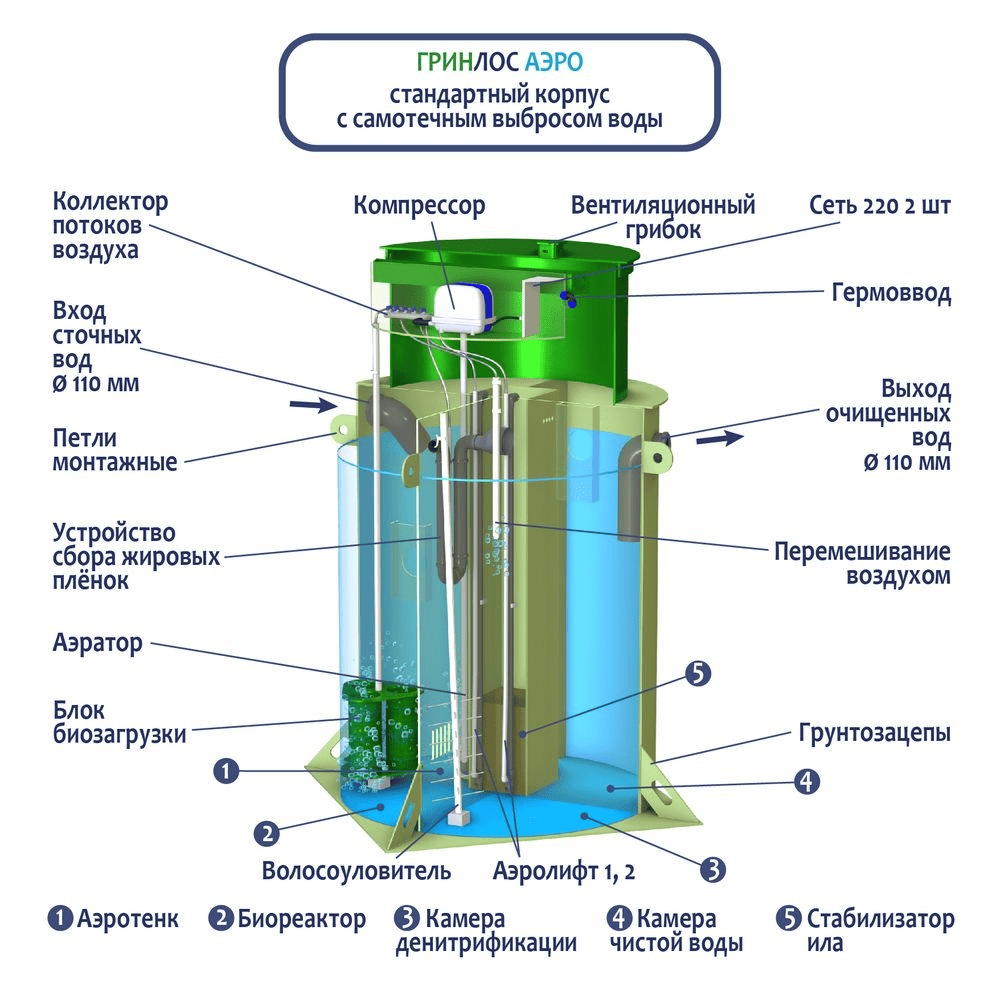 Полное отсутствие неприятного запаха вблизи оборудования благодаря преобладанию аэробных процессов в ходе очистки стоков.